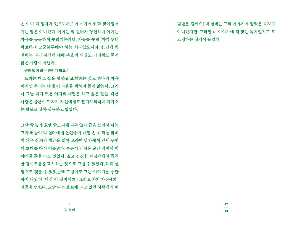 이 새로운 삶은 온통 불안정하다. 하나의 삶에서 다른 삶으로 옮겨 가다 보니 리듬과 규모가 완전히 달라진다. 자신의 생활비를 벌어야 할 뿐 아니라 두 딸을 양육해야 하기에 집 안과 밖을 오가며 끊임없이 분주히 움직여야 한다. 딸들과 이사 온 언덕 위 아파트는 낡은 것도 모자라 난방과 배관마저 말썽이다. 가장 치명적인 변화는 좁은 아파트로 이사하는 바람에 글 쓸 공간이 사라졌다는 것이다. 다행히도 서점을 운영하는 친구 실리아의 호의로 헛간을 빌려 그곳을 집필실 삼는다. 그가 절절한 깨달음으로 고백하듯 “자유는 결코 공짜가 아니다. 자유를 쟁취하고자 분투한 사람치고 그에 수반하는 비용을 모르는 사람은 없다”.