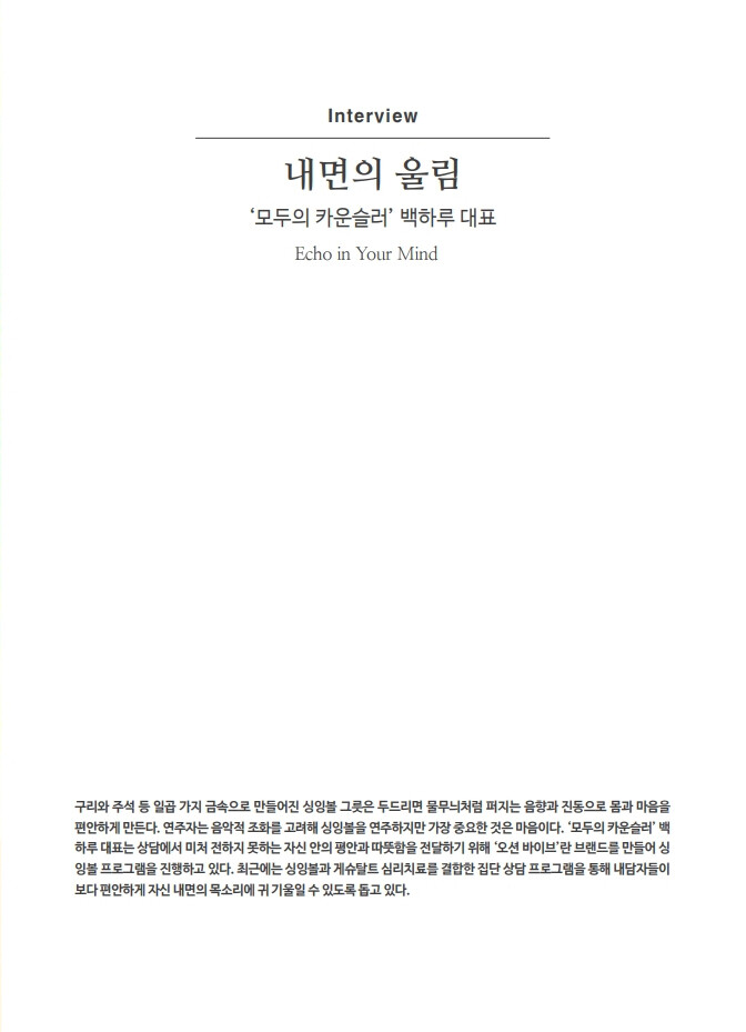 2019년 8월 창간호를 시작으로 마음에 대한 이야기를 병리학적인 지식이 아닌 경험적 방법론을 중심으로 풀어나가고 있습니다. 우울 등의 아픔이 더 이상 특수한 개인의 불행이나 잘못이 아니라 소통을 통해 공유할 수 있고 적극적으로 대처할 수 있는 문제임을 제시하고 실질적인 개선책들을 고민합니다.
