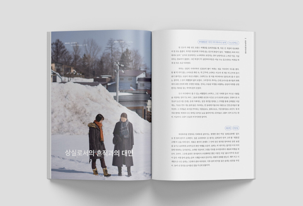 개인에게 강렬한 흔적으로 남은 영화를 발랄하고도 담담하게 담아냅니다. 또한 영화로부터 과거를 되짚어보고 더 나아가 현재를 오롯이 감각하기 위한 또 다른 흔적을 새깁니다.
