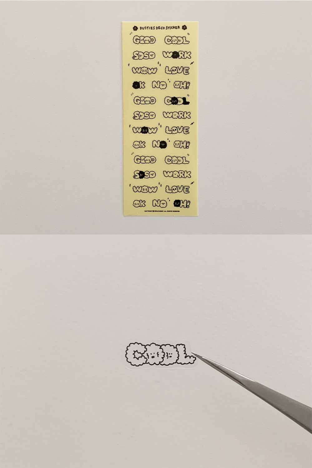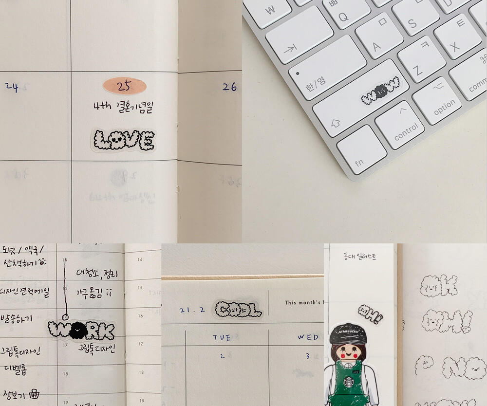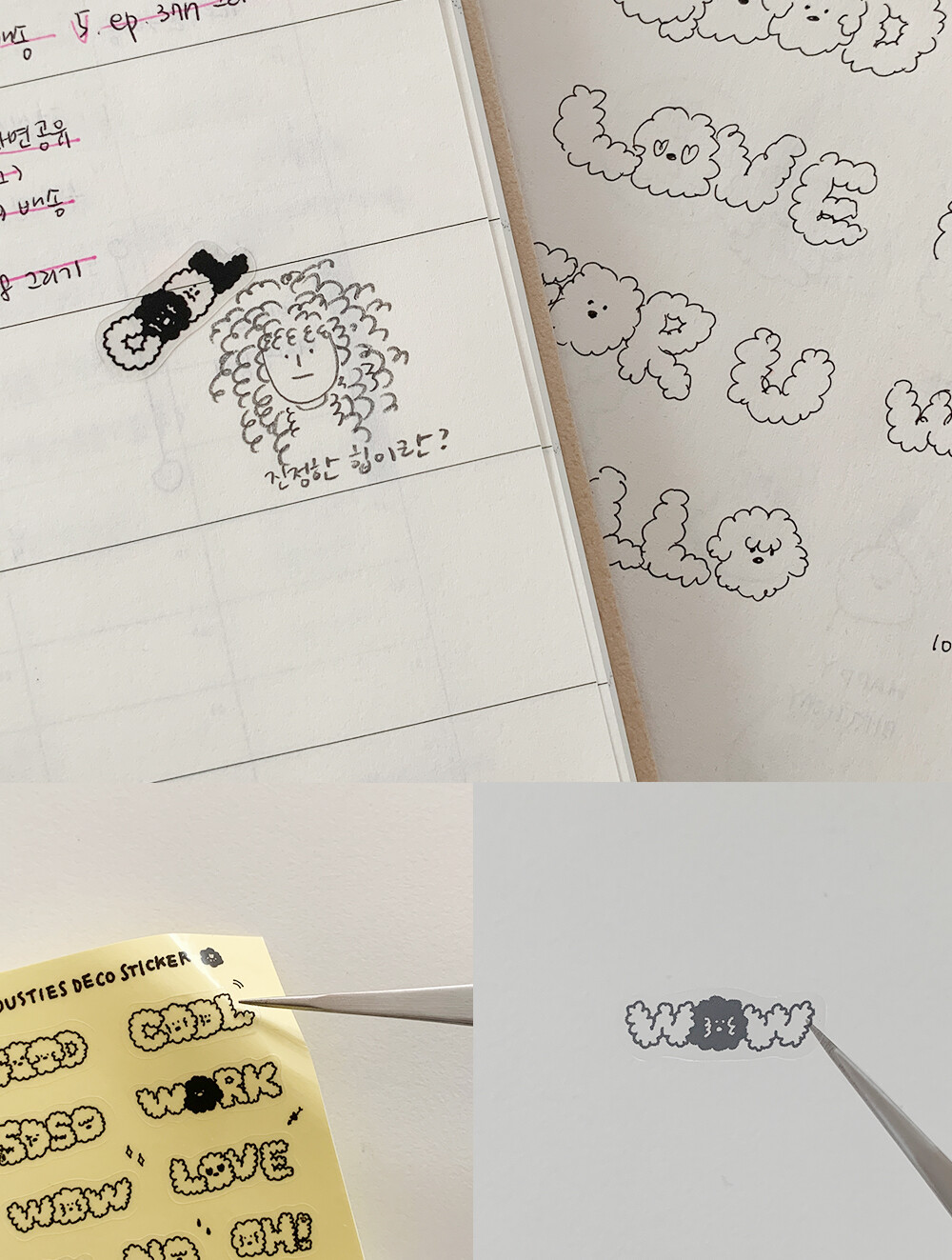 스티커 사이사이 포인트로 까만 먼지 친구들도 있습니다.