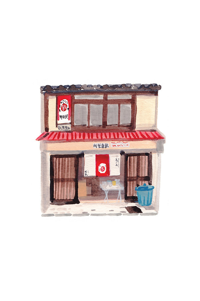 '도시수집: 교토작은가게' 책의 장면들 중 함께두면 좋을 그림들을 2장씩 한 세트로 묶었습니다.