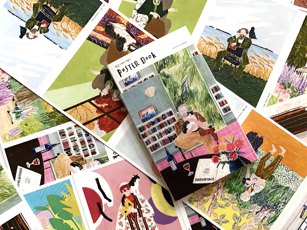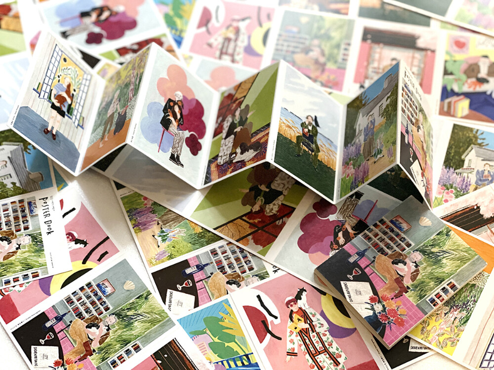 <동물을 사랑한 예술가>는 데이비드 호크니, 어니스트 헤밍웨이, 제인 구달, 앙리 마티스, 피카소, 임순례 등 자신의 방식으로 동물을 사랑한 12인의 예술가, 문화인, 활동가의 모습과 그들이 사랑한 동물을 그린 아코디언북입니다. 동물들은 우리에게 영감을 주고 안식을 주는 존재로써 작가들 곁에 있었다는 뜻을 담았습니다.