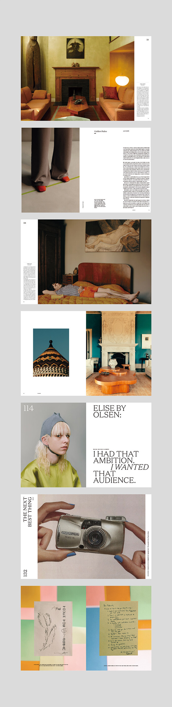 삶의 중요한 성장기를 보내고 있으며, 문화적으로 무시무시한 파괴력을 지닌 청소년은 인류 전체의 상상력에 크게 기여합니다. 청소년기는 광활한 미래가 펼쳐져 있다고 잠시나마 믿었던 장밋빛 추억의 시절로 남아 있지요. 하지만 오늘날 젊은이들이 마주한 현실은 결코 녹록지 않습니다. 114페이지에는 패션 잡지 『월릿』의 21세 편집장 엘리세 비 올슨의 인터뷰가 소개됩니다. 138페이지의 패션 화보 ‘민망함’에서 우리는 우연찮게 친구와 같은 옷을 입고 파티에 왔을 때처럼 애초에 웃길 의도가 없었지만 우스꽝스러워진 상황들을 찾아봅니다. 베스트셀러 청소년 소설 작가 닉 스톤은 이렇게 멋진 말을 해주었습니다. “세상이 실제로 어떤지 내 독자들이 알기를 바라지만, 세상에 어떻게 나아갈 것인지, 자신에 대해 무엇을 믿을지를 스스로 결정할 수 있다는 사실도 알게 되기를 바란다.” 킨포크 39호는 젊은이의 천진난만한 낙관주의와, 세상이 뜻대로 펼쳐지지 않고 오히려 좁아지는 듯이 느껴지는 시기에 성장기를 보내야 한다는 심각한 현실을 균형 있게 다루려고 노력했습니다.