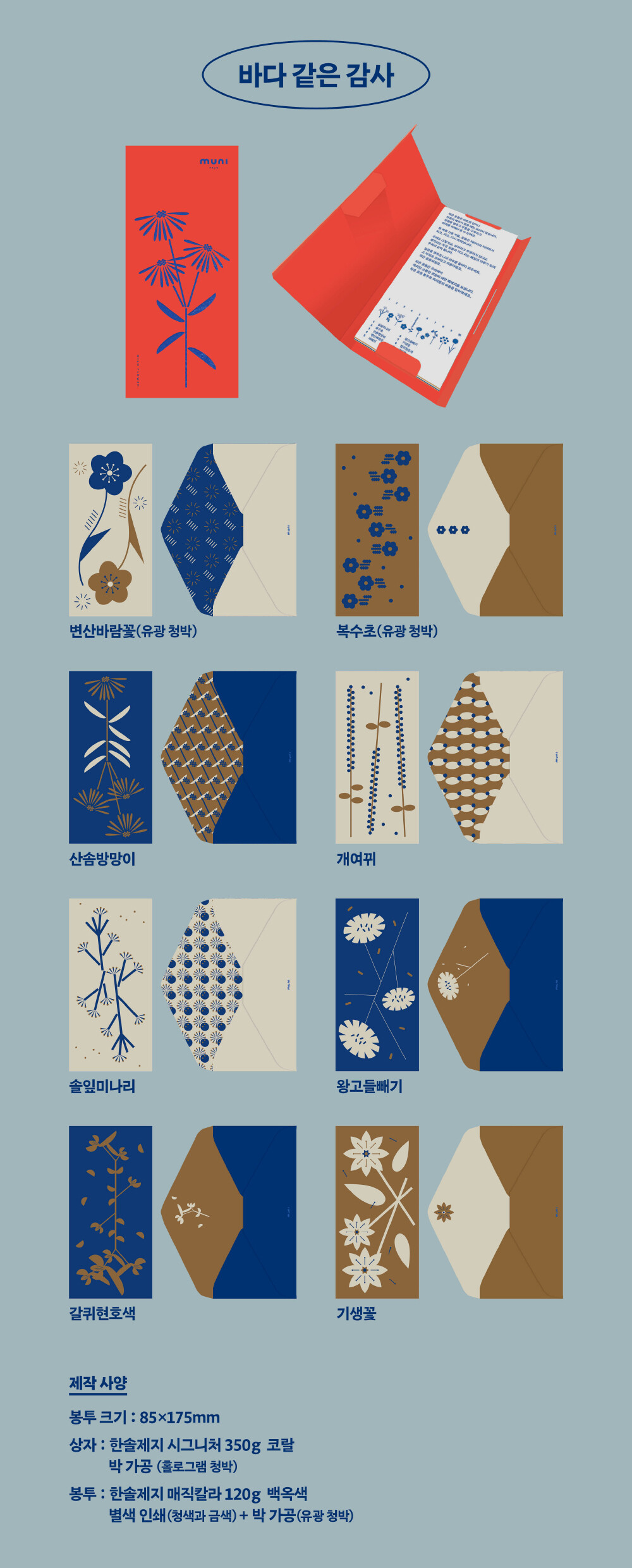 우리나라는 경조사에 돈을 보태주며 위로하고 축하하는 전통이 있는데, 그 전통 속에서 마음을 담는 봉투가 상대적으로 빈약하다고 생각했습니다. 그래서 마음을 담는 봉투를 정말로 '마음을 담아 만들어보면 어떨까' 하는 마음으로 제작하게 되었습니다.