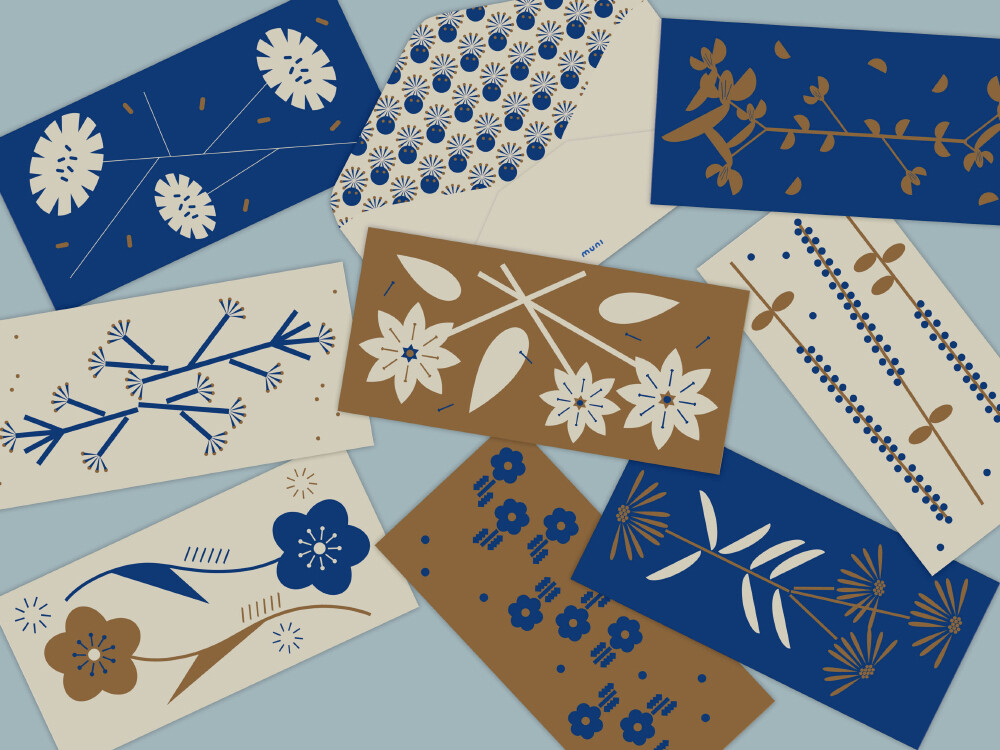 무니의 <꽃봉투>는 꼼꼼한 인쇄와 후가공 처리를 거쳐, 손으로 하나하나 접어 만든 정성이 가득한 봉투입니다.