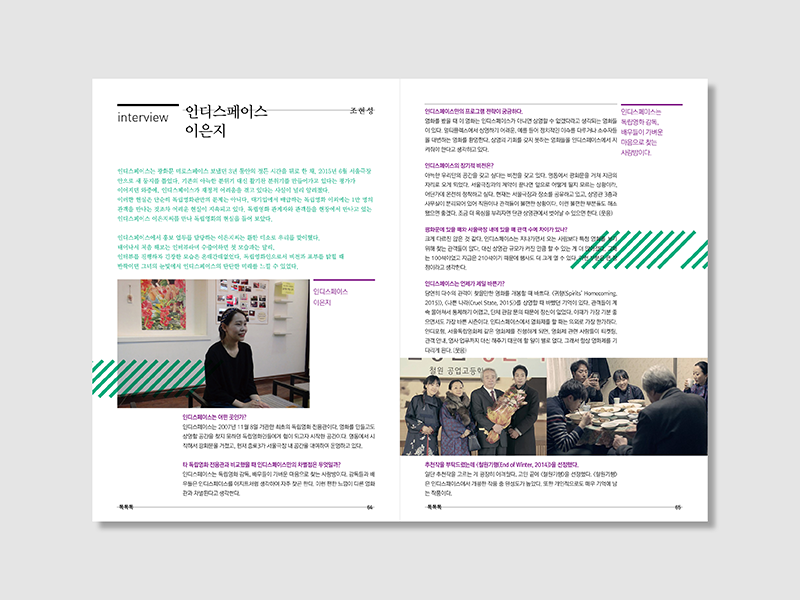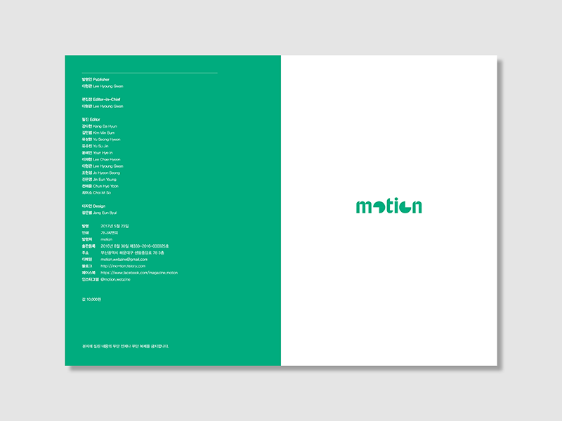 작년 겨울 첫 오프라인 잡지로 motion 1호를 발간한 후, 올 봄 2호를 발간하게 되었습니다. 단순한 정보 제공을 넘어 독립영화를 둘러싼 사람들 간 공감대를 형성하고 교감할 수 있는 매체로 거듭나고자 했던 시작할 때의 마음은 그대로 간직하되, 처음보다 더 나은 모습을 위해 달라지고 새로워진 2호입니다. 독립영화에 대한 애정 어린 시선으로 출발한 motion의 두 번째 발걸음, 이 걸음들이 이어져 유의미한 길이 되기를 바라며, 그 길이 영화를 사랑하고 글을 사랑하는 독자들에게로 닿을 수 있기를 꿈꿉니다.