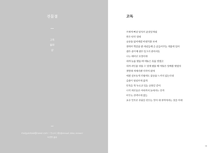7호 텀블벅 리워드인 시창작키트로 지은 세 명의 독자가 보내 준 네 편의 시를 실었습니다.