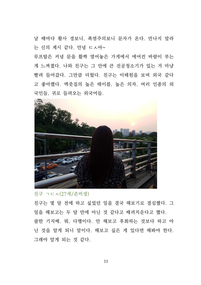 책 속에는 27살 여자의 웃긴 일상, 우울했던 나날, 우유부단했던 날들 등이 들어있습니다. 저의 책을 보면서 한 번이라도 웃기를, 공감하기를 바래봅니다.