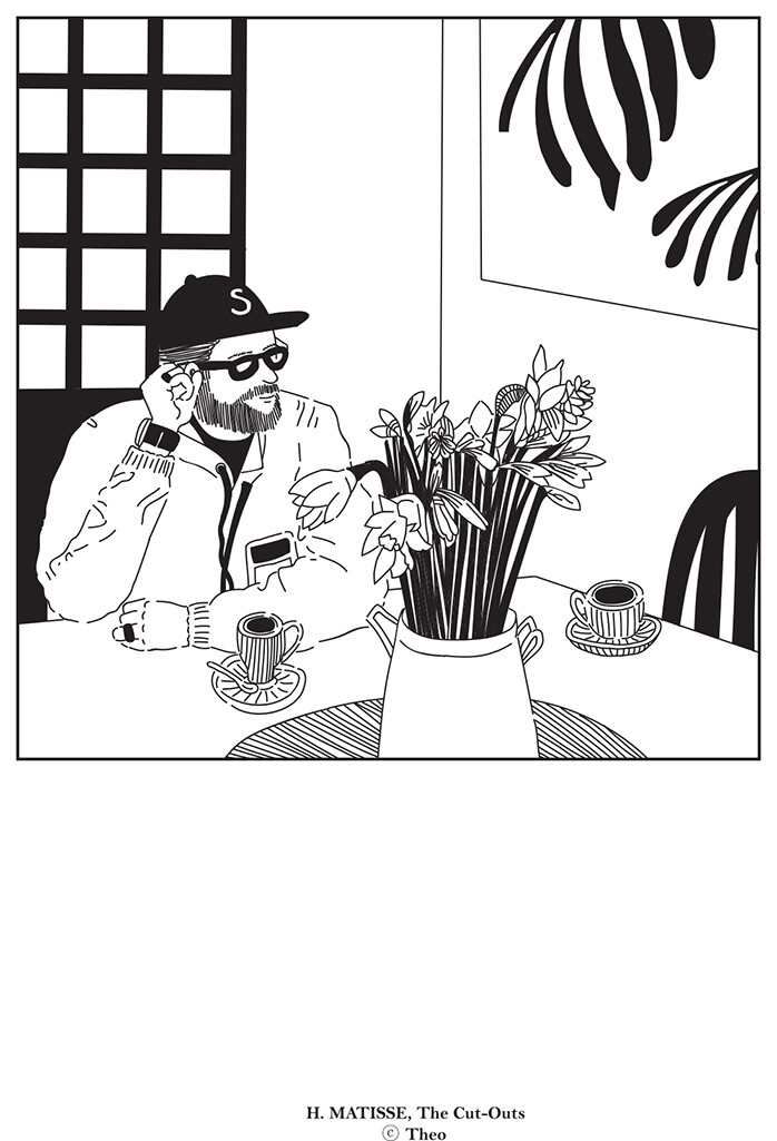 일상 속에 녹아든 마티스 그림을 만나보세요. 갤러리에서 작품을 볼 때, 한가로이 앉아 커피를 마실 때, 잠들기 직전 침대에 누워 책을 읽을 때. 누군가의 정적이고 아름다운 순간들을 담았습니다. 그리고 그 장면 속에 평소 좋아했던 화가인 마티스의 그림을 더해보았습니다.