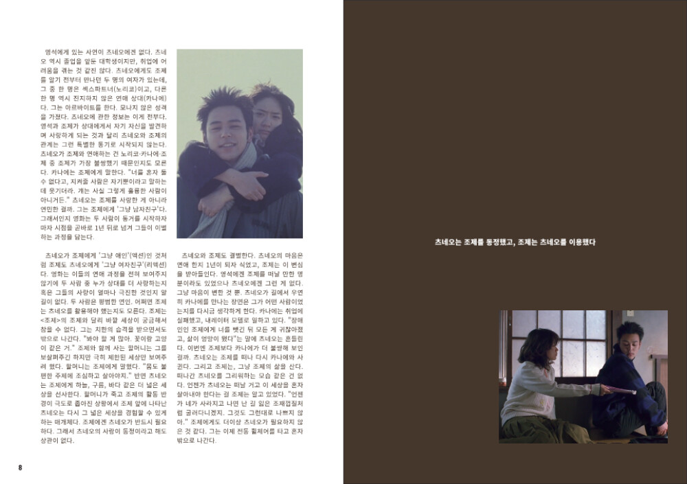영화에 관한 글을 담은 책입니다. 어렵고 지루한 비평 대신 영화에 관한 진지하면서도 재밌는 글을 담아 독자에게 전달하고자 합니다. 한 두 문단 읽다가 포기하게 되는 글이 아니라 첫 문장부터 마지막 문장까지 몰입해 읽을 수 있는 글을 모아서 제공하는 게 <무비고어>의 목표입니다.
