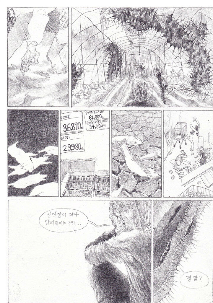 기괴하게 생긴 선인장을 통해 누구나 안고 살아가는 불안함과 예민함, 광기 따위를 보여주고 이를 바탕으로 굉장히 삭막한 삶의 풍경을 묘사고자 했습니다.