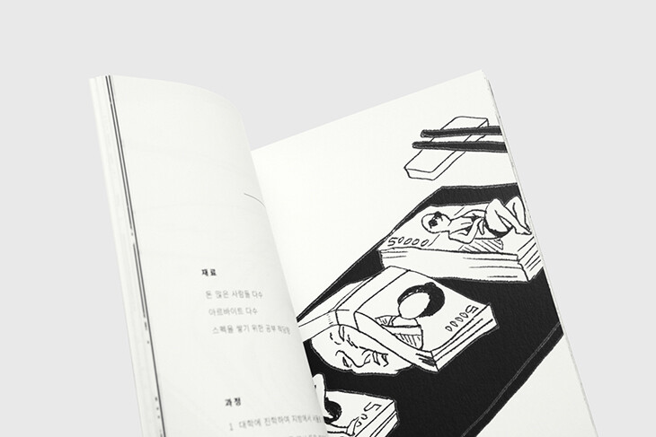 연상되는 이미지를 그려 레시피 형태로 재구성해 만든 일러스트북입니다.