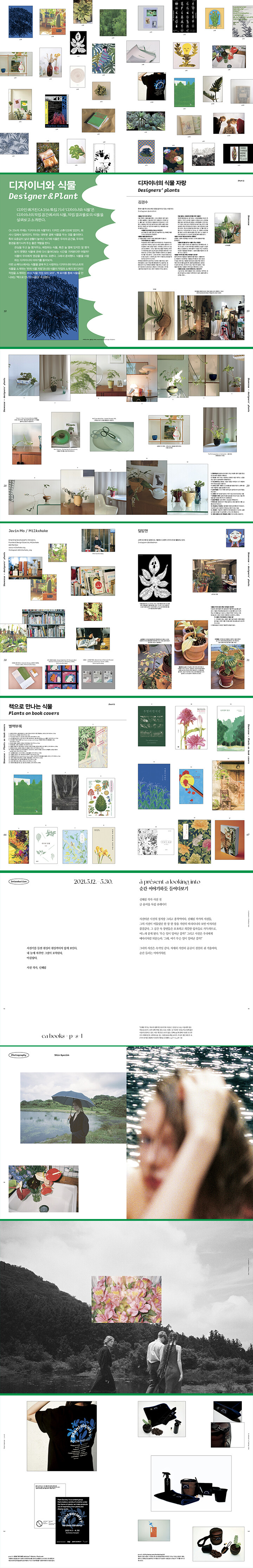이번 쇼케이스에서는 식물을 곁에 두고 사랑하는 디자이너와 아티스트의 식물을 소개하는 ‘반려 식물 자랑’ 코너와 식물이 작업의 소재가 된 디자인 작업을 소개하는 코너: ‘식물 작업 모아 모아’, 책 표지를 통해 식물을 만나보는 ‘책으로 만나는 식물’로 구성했습니다.