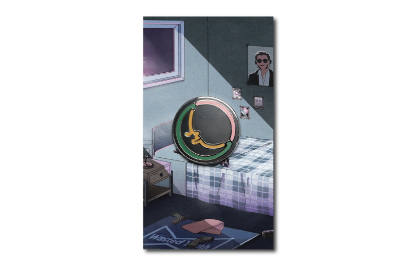잠 못 이루는 밤을 “달” 그리고 “네온”이라는 오브제로 표현한 뱃지입니다.