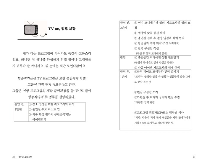 저는 방송작가였습니다. 방송작가로 지내온 동안 일하는 순간이 아님에도 자꾸만 튀어 나오는 직업병 때문에