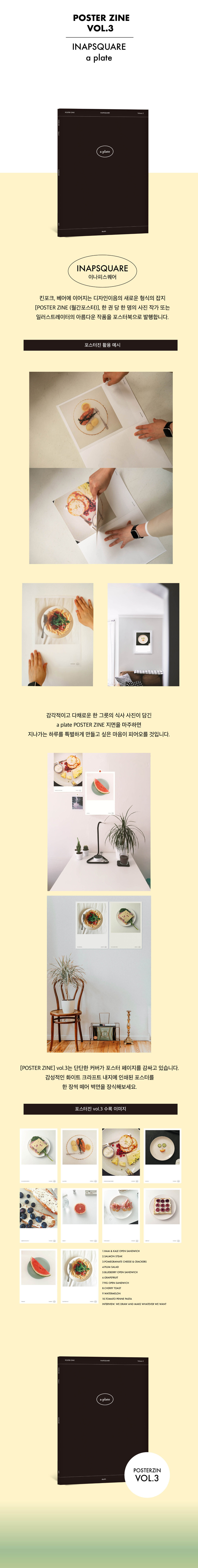 [POSTER ZINE] vol.3에서는 이나피스퀘어와 좋아하는 것을 꾸준하게 할 수 있는 에너지에 대해 대화를 나눈 인터뷰를 만나볼 수 있습니다. 한 그릇의 식사를 기록한 사진이 모여 책이 되기까지. 그들이 어디에서 영감을 얻고 또 어디에서 귀여운 위트를 찾는지 발견하는 시간이 되길 바랍니다.