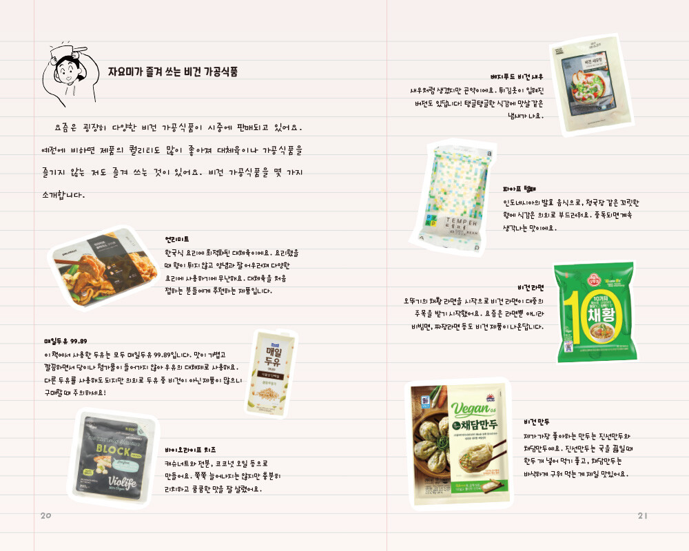 이 책은 비건 레시피입니다. 비건식으로 이런 요리까지 만들 수 있어? 하는 다양한 아이디어가 수록되어 있는 책이에요. 실제 저자가 만든 레시피는 방구석 집콕 레시피로서, 비건 전문 레스토랑에서 볼 수 있는 근사한 메뉴들은 아니지만 그래서 더욱 자주 활용할 수 있는 레시피가 가득합니다. 비건 지향인이 아니어도 괜찮아요! 아침 혹은 저녁, 아니면 점심! 하루 한 끼만이라도 비건자취요리에 도전해보는 건 어떨까요? 건강한 나를 위해, 더 나아가 건강한 지구를 위해 다 같이 노력해보아요!!!