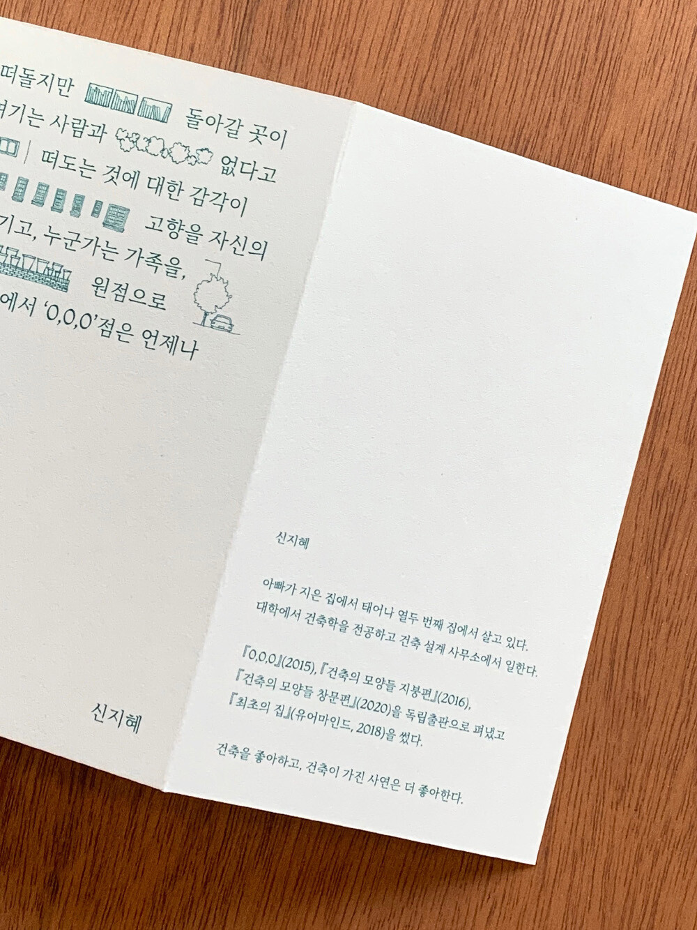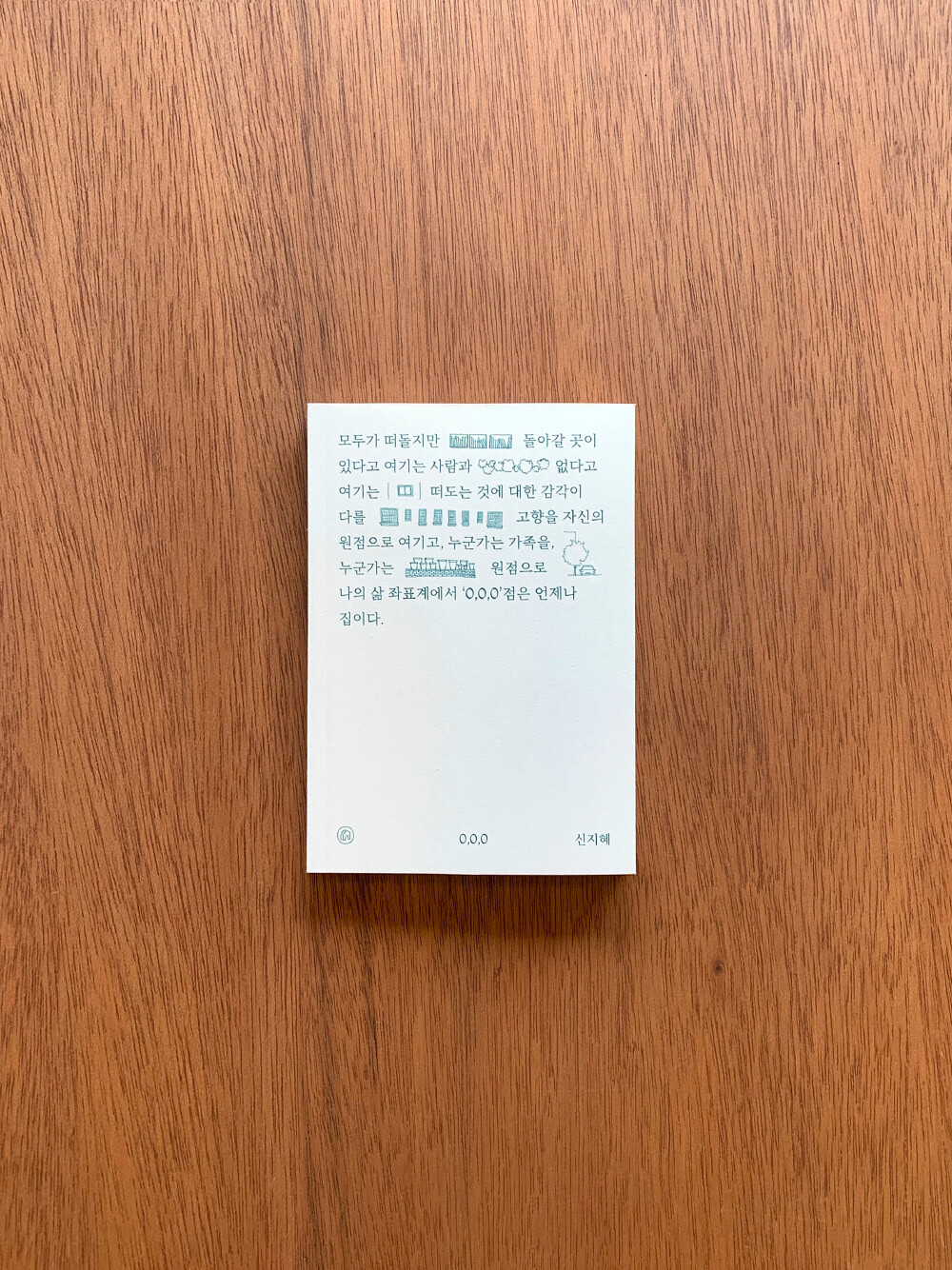 『최초의 집』(2018)을 쓴 신지혜 작가가 2015년 직접 만들었던 『0,0,0』의 디자인 개정판.
