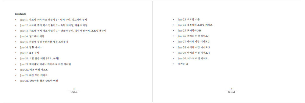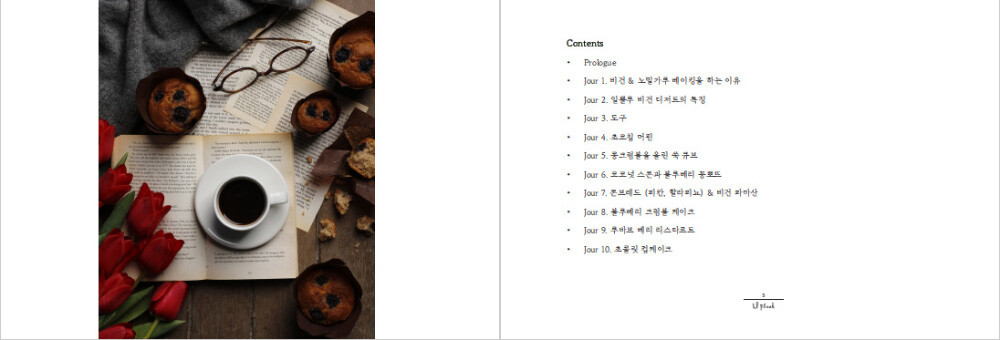 ‘일쁠루수빠리’는 ‘파리에 비가 내린다’는 뜻으로 저자가 처음 제과를 시작한 파리, 비 오는 파리의 아름다움에 대한 애착을 담아 지은 제목입니다. 이 책은 30일 동안 건강한 재료로 만들어 기분 좋은 달콤함을 줄 비건 & 노밀가루 레시피, 비건 베이킹 정보, 저자가 애정 하는 파리와 니스의 비건 카페 정보들로 채워져 있습니다. (본문 p. 9)