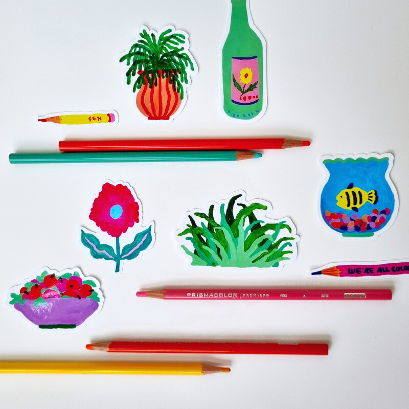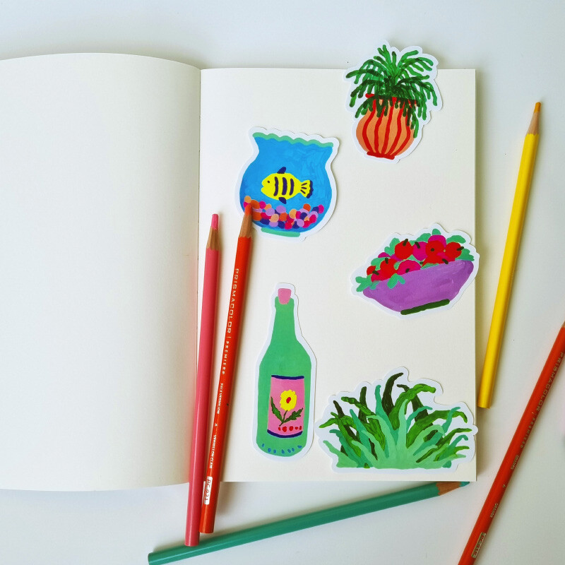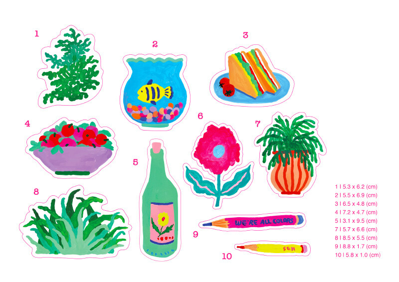 일러스트레이터 박세은의 과슈 드로잉으로 제작한 스티커 팩입니다. 총 10장의 조각 스티커로 구성되어 있습니다.