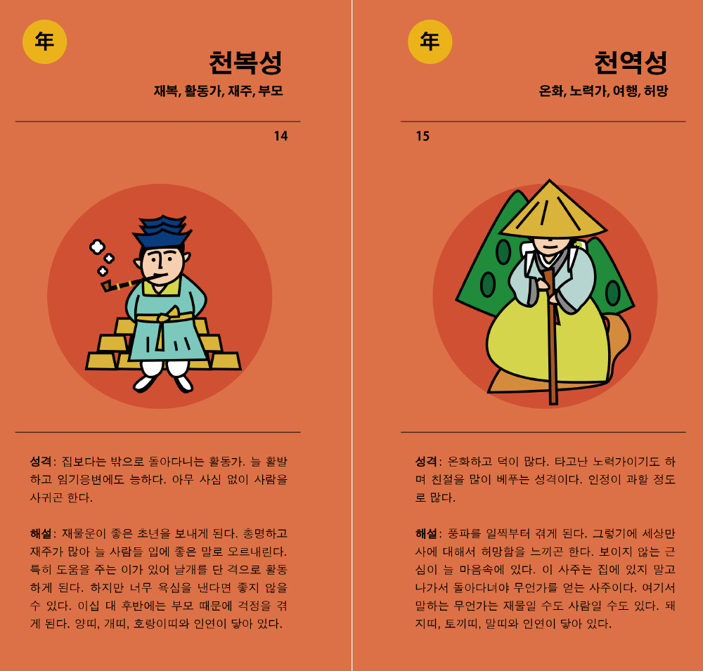 당사주는 천귀(天貴), 천액(天厄), 천권(天權), 천파(天破), 천간(天奸), 천문(天文), 천복(天福), 천역(天驛), 천고(天孤), 천인(天刃), 천예(天藝), 천수(天壽) 등 하늘에 있는 12개의 천성을 바탕으로 인간의 길흉과 운명의 흐름을 알아보는 방법이다. 일반 사주와 다르게 년도별이 아닌 초년, 중년, 말년으로 나뉘어져 있는 것도 흥미로운 점이다. 디테일보다는 포괄적인 점괘에 초점을 맞춘 것이다. 게다가 죽어서 만나는 저승대왕을 알려준다거나 몇 세에 사망할지 알려주는 부분들은 당사주가 가진 기이한 부분 중 하나이다.