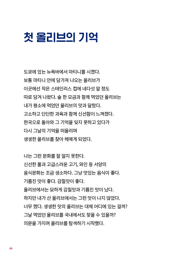 ‘고소하면서도 쌉싸름한 첫 올리브의 기억’