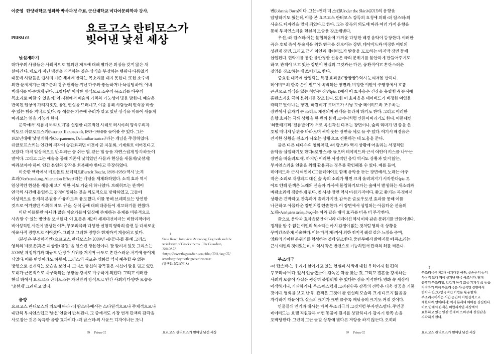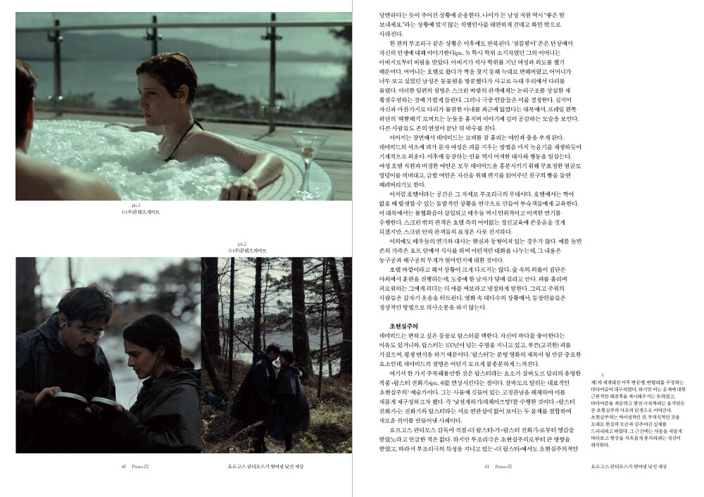 프리즘오브 18호에서는 이토록 묘한 세상에 이 묘한 영화를 비추어보려 합니다. 책을 다 읽고 나면, 영화에서 가장 비현실적이었던 지점이 가장 현실적인 요소처럼 느껴질지도 모릅니다. "더 랍스터"의 기묘한 감각을 13편의 기사와 함께 전합니다.
