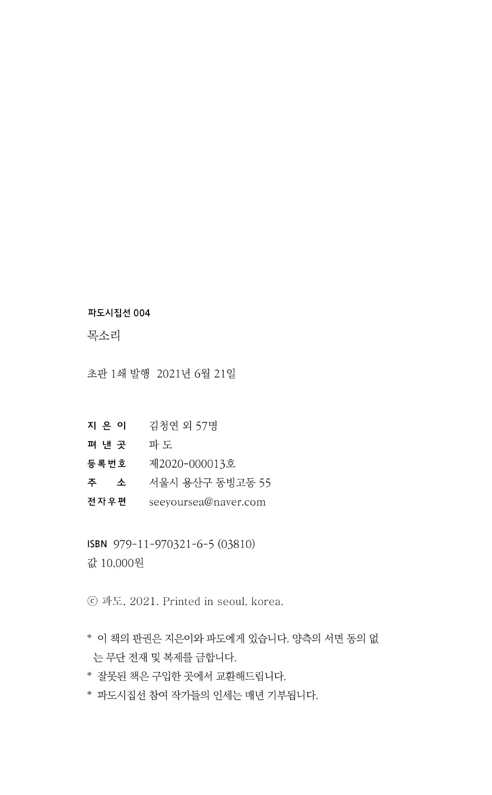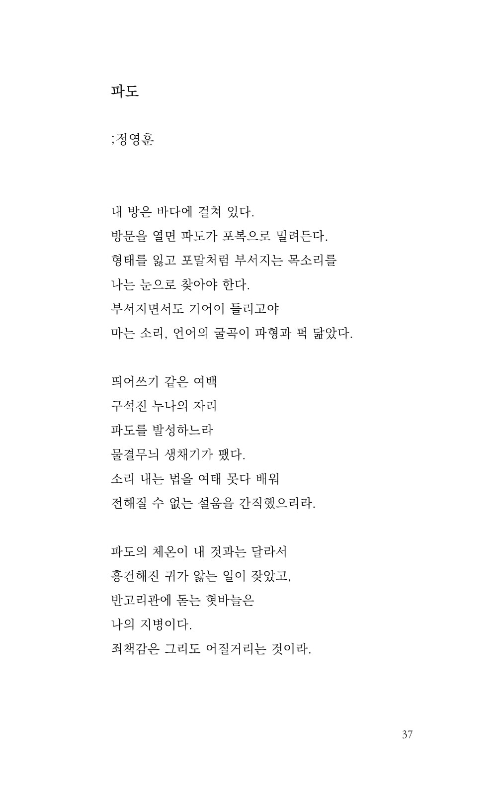 파도 시집선 004에 형태가 없는 목소리를 볼 수 있는 58개의 시로 담았습니다.