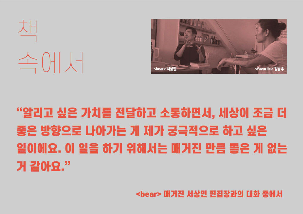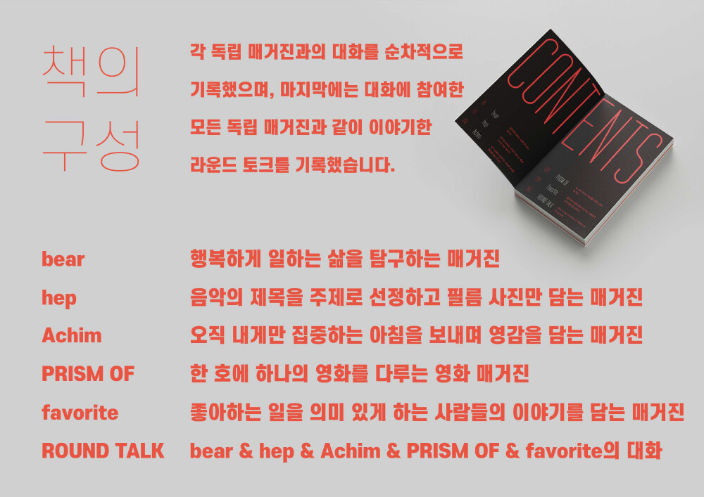 독립매거진 <bear>, <hep>, <Achim>, <PRISM OF> <favorite>의 MAKERS가 각자의 매거진을 창간해서