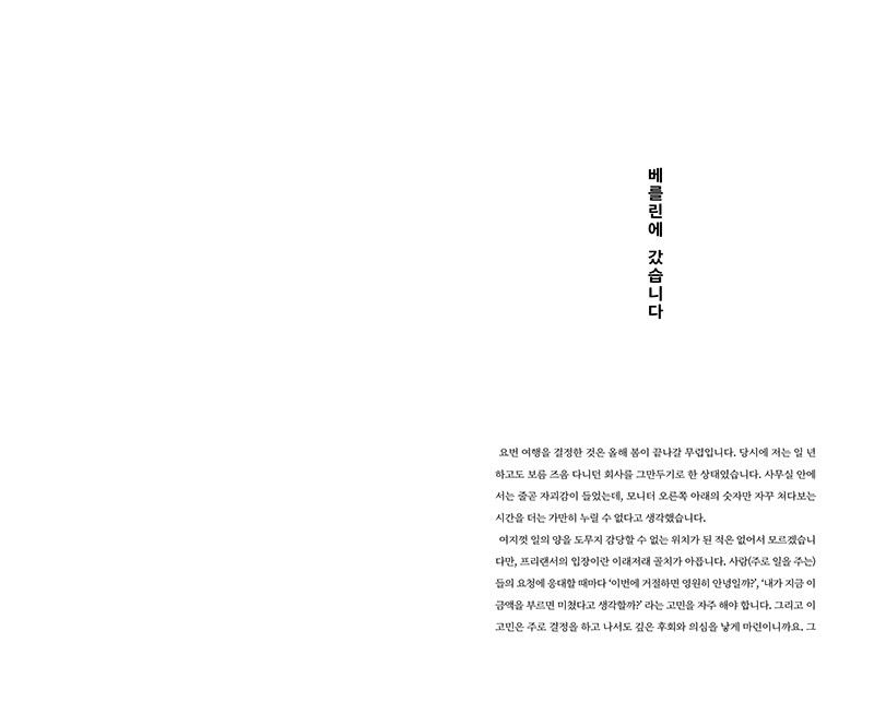 당시에 저는 일 년하고도 보름 즈음 다니던 회사를 그만둔 상태였습니다. 그리고 자진해서 만든 시간의 여백을 기꺼이 즐겨보기로 했습니다.