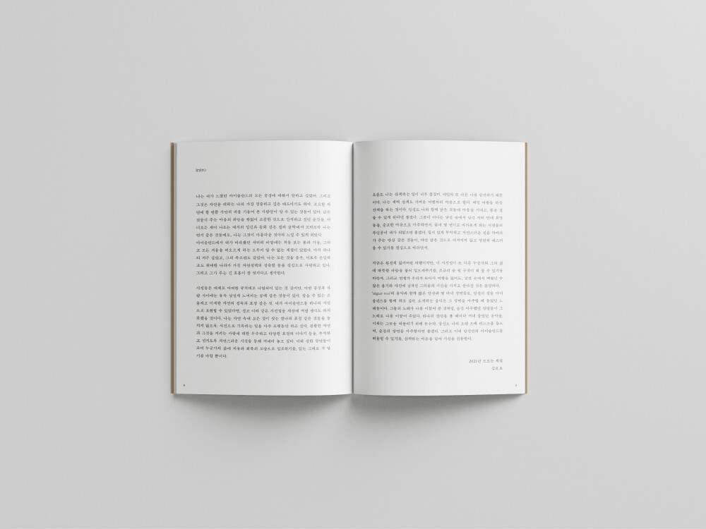 이 사진집에는 내가 느꼈던 광활한 자연과 그것을 지키는 사람에 대한 무수하고 다양한 표정의 이야기들이 담겨있다. 이토록 선한 장면과 문장들이 모여, 누군가의 삶에 치유와 회복의 모양으로 일조하기를 바라며 썼다. 지금은 완전히 잃어버린 여행이지만, 이 책이 또 다른 누군가와 그의 삶에 따뜻한 바람을 불어 일으켜주기를, 조금의 숨 쉴 구석이 돼 줄 수 있기를 진심으로 바란다.