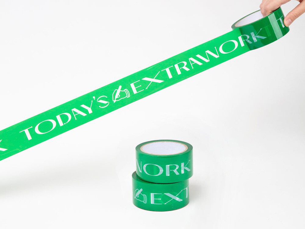 오늘의잔업의 영문명인 'Today's Extrawork' 레터링이 새겨진 박스 테이프입니다. 다용도로 사용할 수 있습니다.