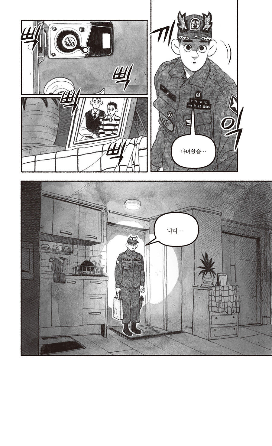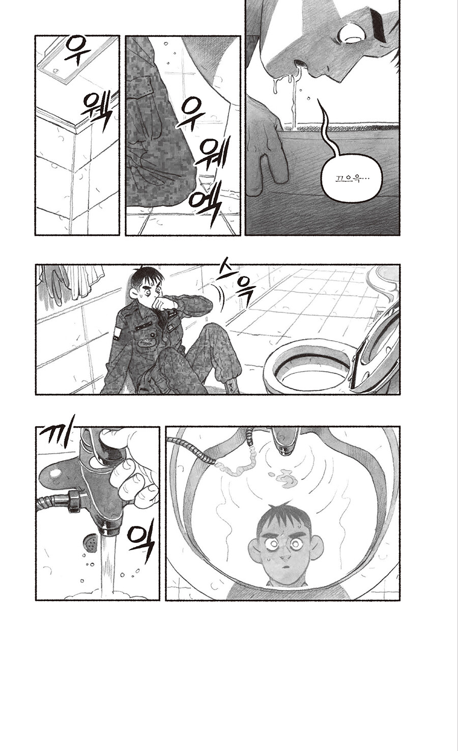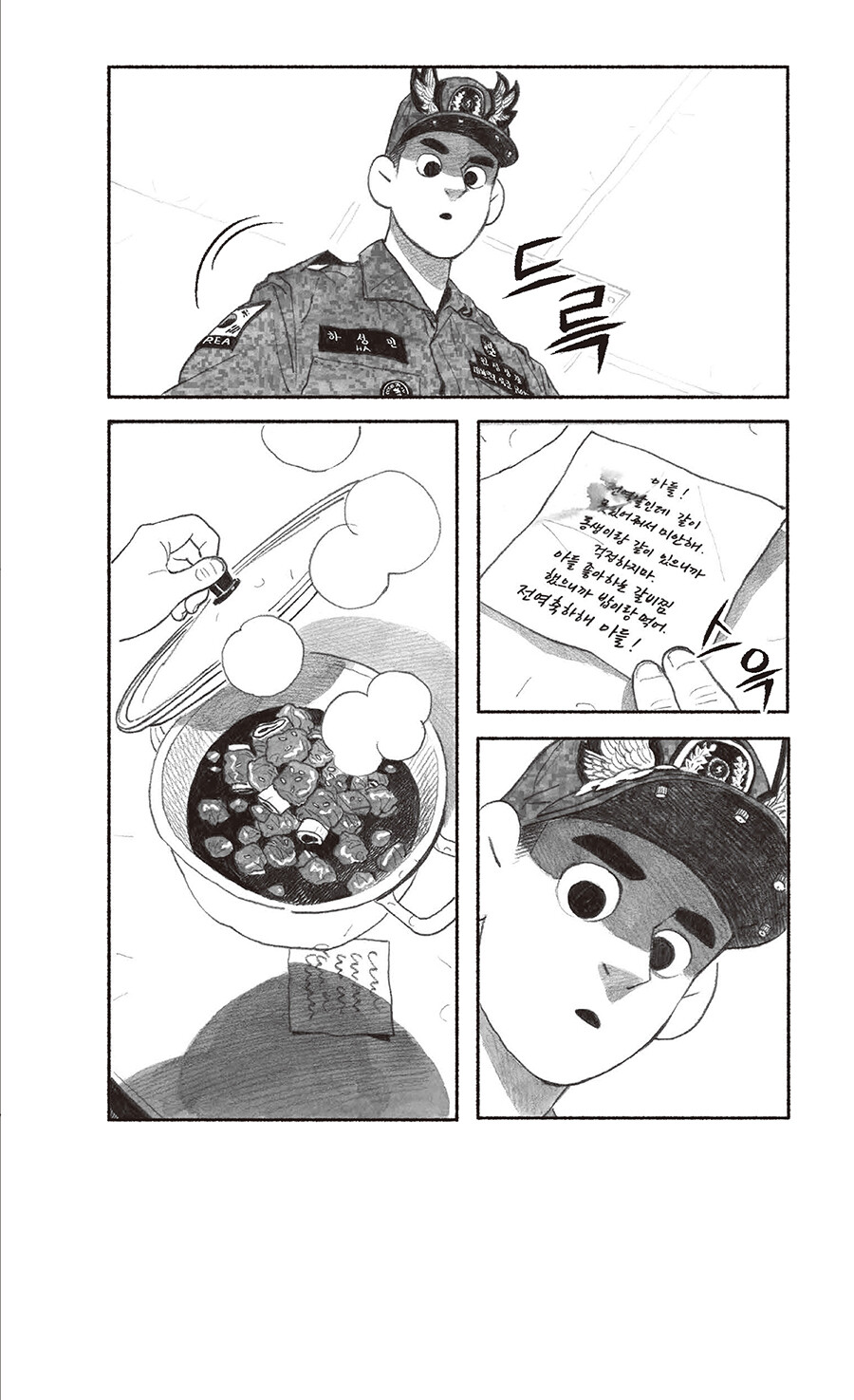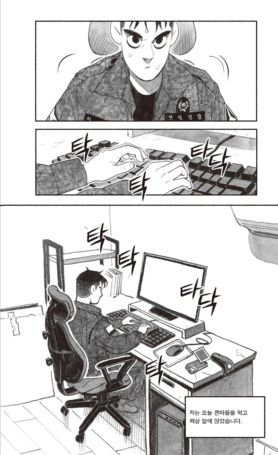 ‘민간인통제구역’은 영토를 다룬 개념어지만, ‘내 안의 보통 사람을 통제하는 구간’으로 읽히고도 남는 이 만화를 읽고 있자면… 이병이 일병 되고, 병장은 짐 챙기는, 속절없이 달아나는 세월의 고속도가 간절해진다. 그러나 스크롤을 흘려보내듯이 내리기에는, 연필 꾹꾹 눌러 그려진 인물들에게 실린 착실한 무게에 마음이 갔고, 웹 기반 만화를 지면으로 옮긴다는 분수 넘는 프로젝트가 덜컥 시작됐다. 이 책 덕분에 엿볼 일도 엿들을 일도 없던 군생활은 물론 Z의 은어를 상당수 배웠다. 은어는 무릇 해당 구성원이 아니면 알아듣지 못하는 게 맛이지만, 모르면 모르는 대로 넘어갈 리 없는 독자의 데이터를 아껴드릴 겸 몇 개의 주석을 달아두었다. 이곳 인물들이, 머잖아 칸의 테두리를 넘고 홈통을 건너 페이지 바깥으로 벗어나오는 미래를 가늠해본다.