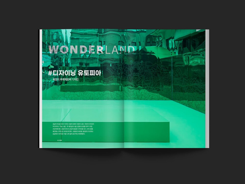 디자이어링 원더랜드(Desiring Wonderland) 파트에서는 신선한 경험으로 오감을 일깨우는 디자인 숍과 다이닝을 소개하는 동시에 부동산, 자동차, 건축물을 통해 강남을 둘러싼 다양한 욕망을 면밀히 짚어봅니다.