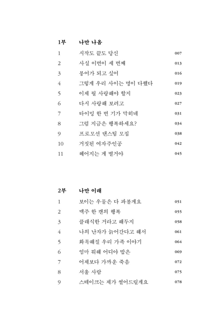 모두가 겪었을 헤어짐과 회복 그리고 만남에 대한 이야기를 저의 독특한 에피소드로 써 내린책입니다. 2부 ‘나만 이래’는 나뿐만이 아닌 어쩌면 모두가 그럴지도 모를 이야기가 아닐까 합니다. 스치다 우연이 이 책을 발견하는 모든 독자들이 소소한 재미와 위로를 얻고 가시면 하는 바람입니다.
