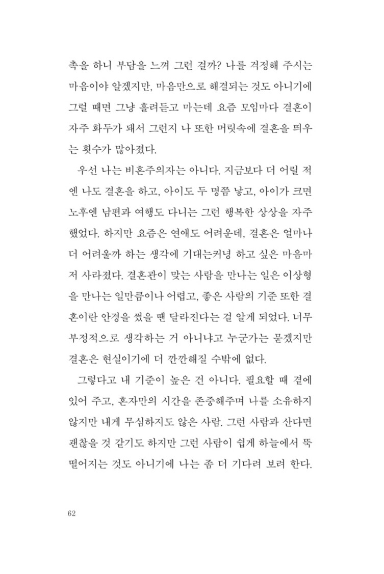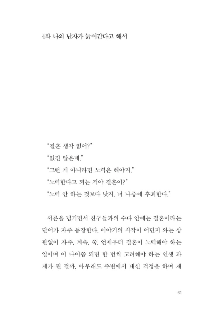 한 해 한 해 나의 난자가 늙어간다고 해도 말이다. 나만큼은 나에게 결혼을 강요하고 싶지 않다.