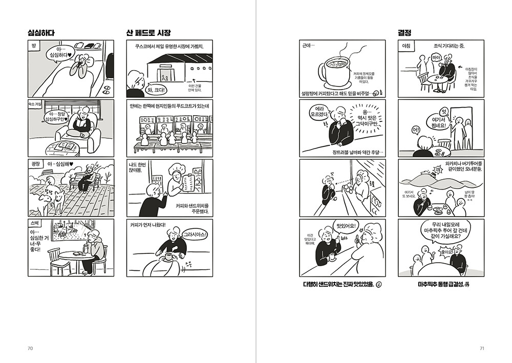 2011년에 <도쿄는 꿈맛>이 출간된 이후, 정식 출판물로는 10년 만에 선보이는 허안나 작가의 신작 <남미 요양기>. 낯선 곳에서 게으르게 움직이며 익숙함을 만들어내고, 그 안에서 최대한 심심하게 지내는 것이 가장 큰 행복이라 생각하는 작가의 요양 같은 여행기다. 가까운 동남아 휴양지를 놔두고, 먼 남미까지 가서 집같이 아늑한 공간을 찾아 헤매는 집순이 여행자의 웃픈 일상이 4컷 만화들에 담겨있다.
