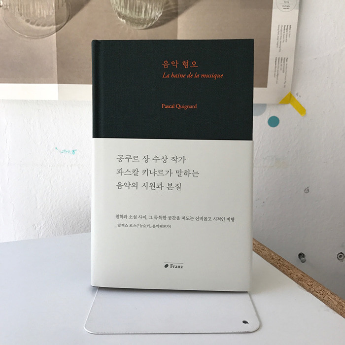 - 『음악 혐오』는 음악의 기원에 관한 사유이자, 음악이 인간의 육체에 미치는 영향력에 대한 연구이며, 반대로 인류 문명은 어떠한 방식으로 음악을 남용했는지에 관한 반성인 동시에, 작가 개인에게 음악이란 무엇인가에 대한 내밀한 고백이다.(옮긴이의 말)