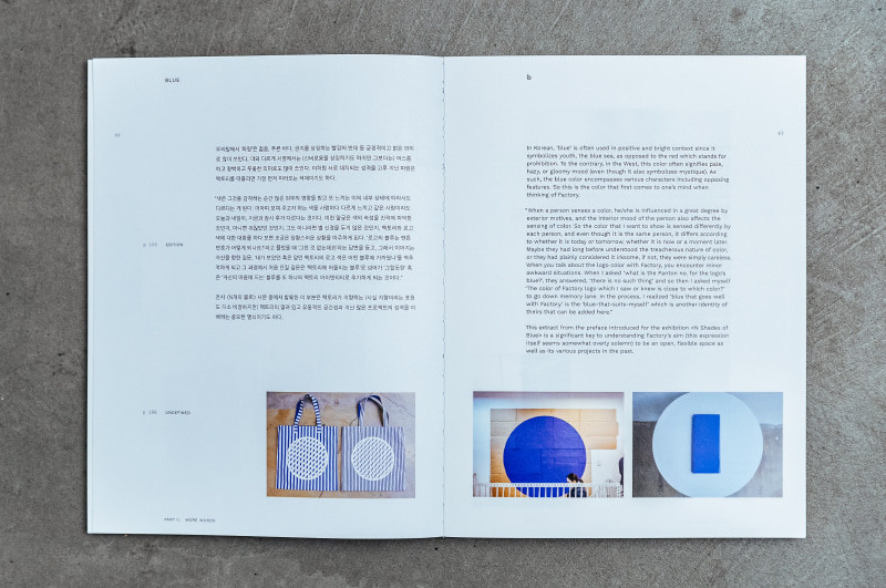 많은 경우의 위대한 발명 혹은 발견에는 그 뒤에 셀 수 없는 시행착오와 애정이 있기 마련입니다. ‘세렌디피티’는 단순한 우연에서 촉발된 행운이 아니라, 그 속에서 치열하고 꾸준한 노력의 프랙티스들이 오랜 시간 동안 쌓여야만 가능하기 때문입니다. 이 글로서리 북을 통해 그 온도와 냄새, 그리고 숨겨진 무게까지 간접적으로나 경험할 수 있기를 바랍니다. 책의 내용에서 유독 자주 등장하는 말들이 있습니다. 협업과 공동체, 배움과 연습, 사람과 관계, 시간과 공간, 소통과 공유… 어떻게 보면 모두 같은 데에서 오거나 모두 같은 곳으로가는 듯한 이러한 말뿐만 아니라 수록된 사진들도 이미지로서 무언가가 계속 중첩되는 느낌입니다. 결국 팩토리가 나아가고자 하는 예술에 대한 새로운 정의와 예술 경험의 공공성이라는 매우 추상적인 개념이 구체화되는 과정이 종횡으로 직조되어 있는 듯합니다.