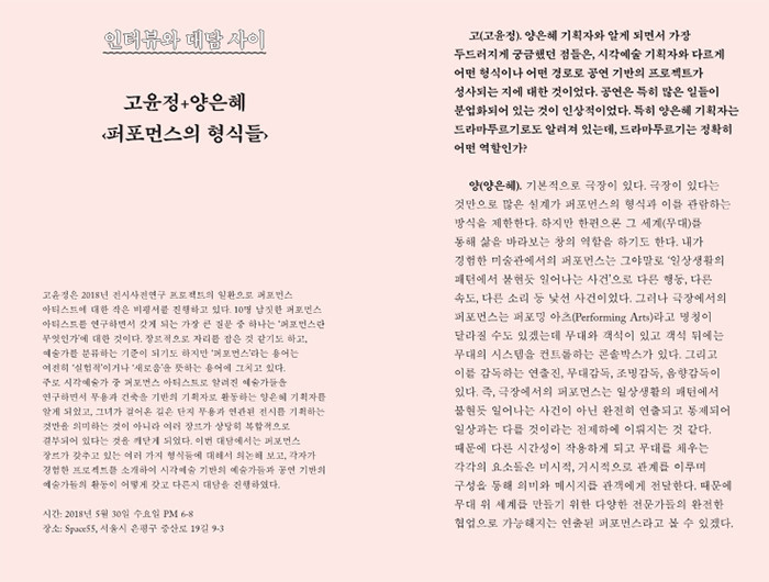 고윤정 저자는 전시사전연구의 일환으로 2018년 <퍼포먼스 아티스트 레코딩>이라는 작가 연구 서적을 출간한다.