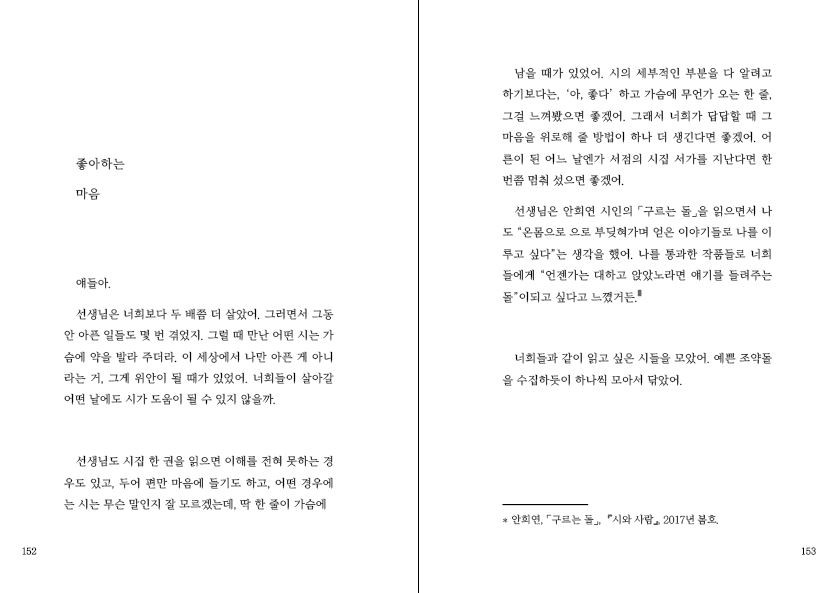 분석해서 문제를 풀기 위한 것으로 생각하는 경우가 많았다. 나는 이런 오해를 풀고, 시를 좋아하는 마음을 함께 나누고 싶었다.