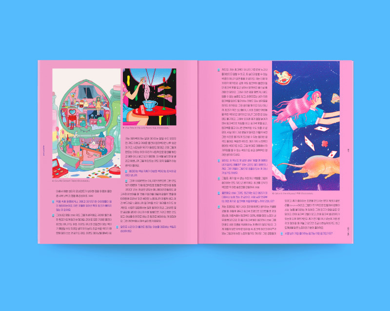 <핑크 팔레트>는 총 20명과의 인터뷰이와 주고 받은 대화와 이미지들로 구성되어 있습니다.