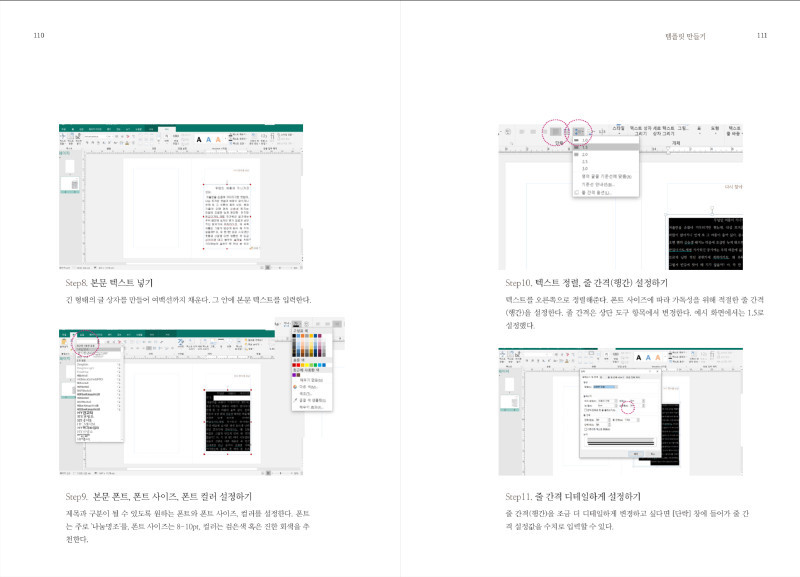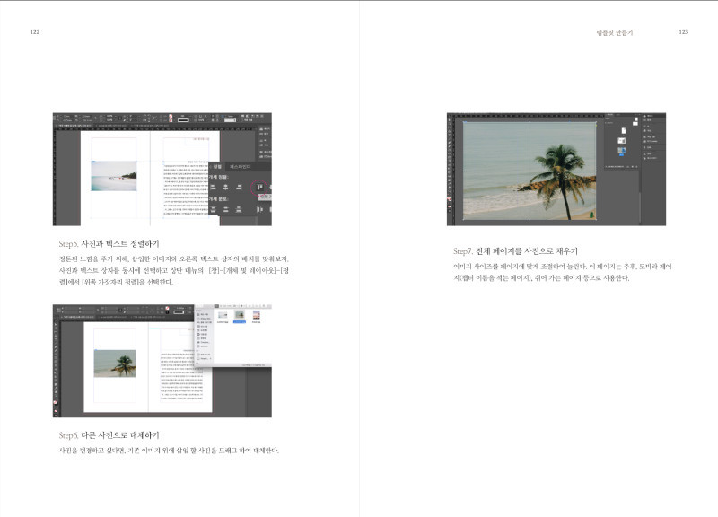 판형 만들기 / 글 넣기 / 사진 넣기 / 도형 넣기페이지 수 넣기 / 내용 채우기