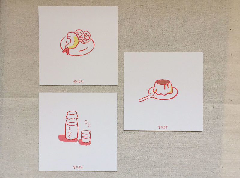 1월의 미루쿠, 2월의 새우튀김, 6월의 푸딩 총 3장이 한 세트입니다.