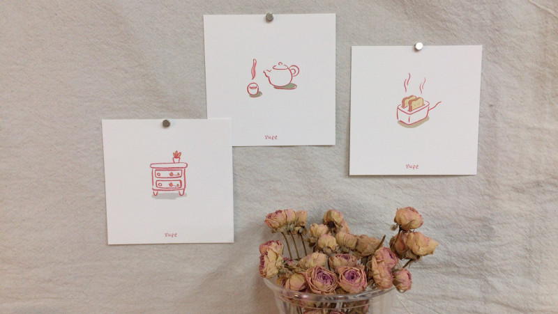 2월의 서랍장, 3월의 토스트, 10월의 다도 총 3장이 한 세트입니다.