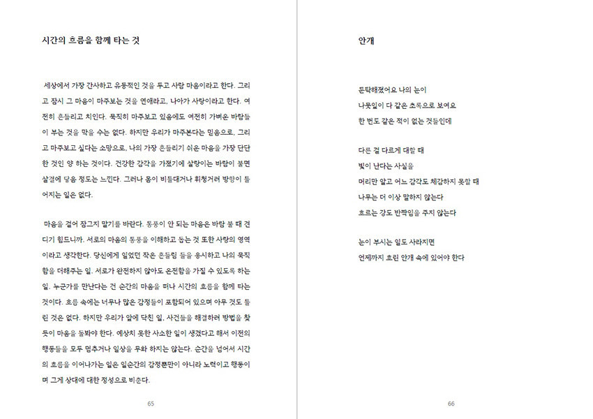 슬픔과 아픔을 맑은 마음으로 왜곡하지 않되, 세상에는 아름다움이 놓일 자리도 반드시 필요합니다.