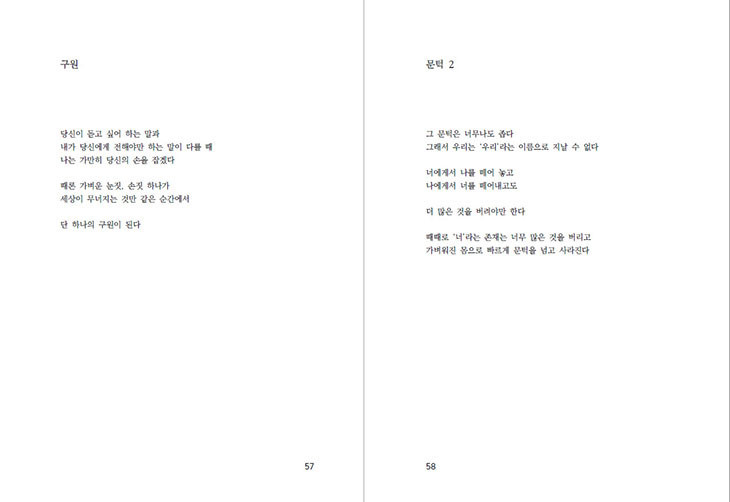 사춘기 시절, 숱한 밤을 종이와 펜을 붙들고 보냈다. 자신을 위로하기 위한 글들이 다른이들을 위로하기 시작한다는 것을 알게 되던 열일곱의 여름밤, 글을 쓰며 그들의 그늘을 지켜내겠다고 결심했다. 다시 수계절을 돌아, 여전히 그늘이 있는 사람들을 사랑한다고 말한다. 그리고 그들의 삶에 서서히 스며들고 싶다고.