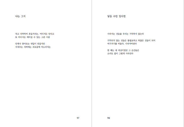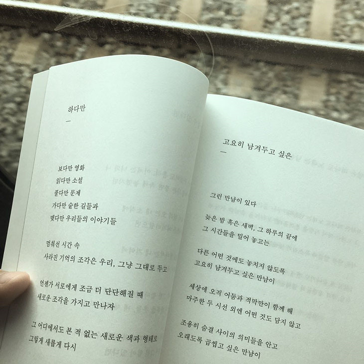 내가 서 있는 지금, 여기의 순간에 스치는 이미지와 그 사이 스며들던 의미 붙잡아 기록했다.