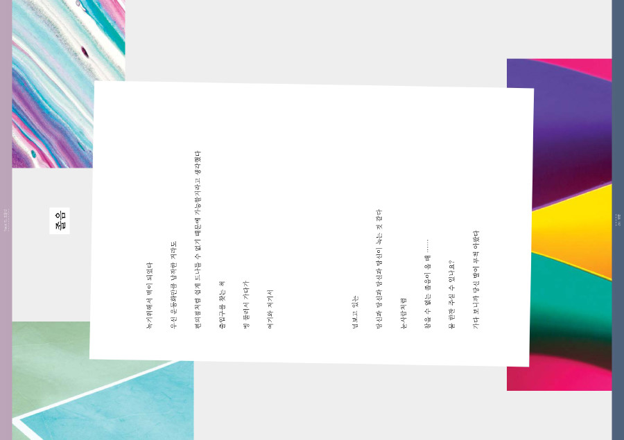 이후 트랙에서는 오선영의 소설 혹은 주제에 대한 다른 여러 작가의 작품을 만날 수 있다. 장 르가 구별되거나 명시되지 않은 그들의 작품을 통해 『비릿』은 독자들이 일련의 음악적 흐름을 느낄 수 있기를 희망한다. 나아가 이 같은 『비릿』의 작은 첫 걸음이 우리 문학을 기준으로 ‘b’문학이거나 ‘非’문학에 가까운 것들을 ‘be’문학으로 이끌 수 있기를, 그리하여 우리 사회에 고착화된 메이저리티와 마이너리티의 경계를 허무는 데 일조할 수 있기를 고대한다.