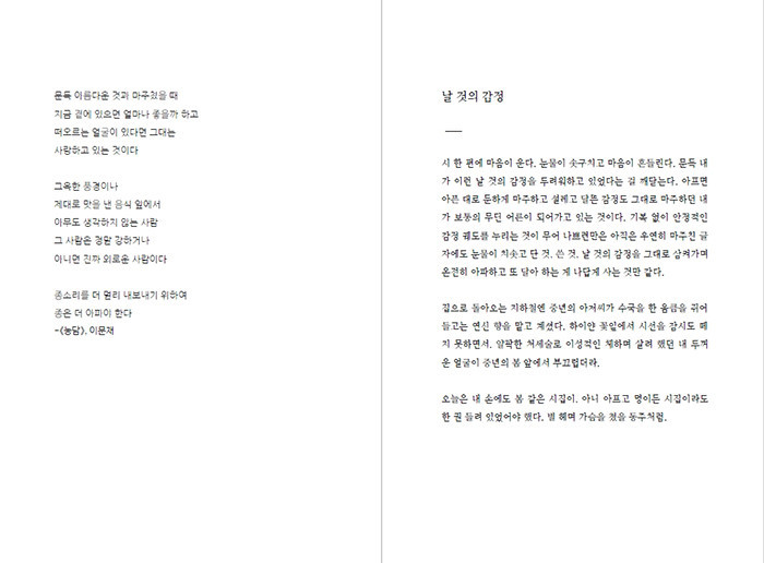 숨고 싶고 울고 싶고 외면하고 싶은 날들이 많았고 보람 있고 의미 있고 자랑하고 싶은 날도 많았다. 마음이 초라한 날에도, 마음이 가득 찬 날에도 그렇게 7년 동안 매일 글을 썼다.